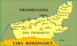 Sa ville principale est Făgăraș. Au nord, elle est bordée par la rivière Olt, tandis que la région de Valachie est au sud. Au Royaume de Hongrie et dans la Grande Roumanie, elle correspondait au comté de Fogaras et, puis, respectivement, au județ de Făgăraș. Aujourd'hui, il est divisé entre le județ de Brașov et le județ de Sibiu.