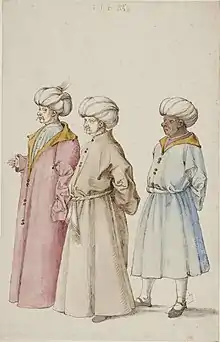 Pour composer cette scène, Dürer emprunte à plusieurs artistes. Le format horizontal ainsi que la disposition du canon au premier plan évoquent Judith et Holopherme d'Israhel van Meckenem. Le personnage qui se détache du groupe est une citation issue de la Procession sur la place Saint-Marc de Gentile Bellini. Ce tableau fut achevé en 1496 et Dürer eut probablement accès à son carton lors de son premier voyage à Venise, comme le montre le dessin à l'aquarelle de trois Orientaux conservé au British Museum[1].