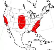 Des fossiles ont été récoltés à Midway Site (en) en Floride, au Saskatchewan, à Boron en Californie et sur plusieurs sites au Nebraska et au Wyoming.