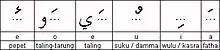 | ن nun | و waw | ه ha | ي ya | ڽ nya |