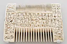 - peigne dit de saint Héribert (970-1021) , réalisé dans la seconde moitié du IXeme siècle , conservé au Schnütgen Museum de Cologne (Allemagne)[5] ;