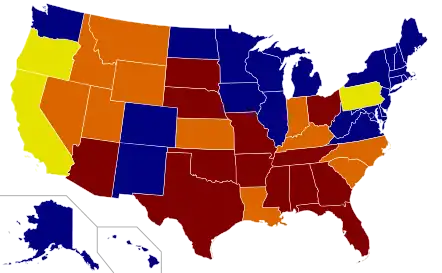 Outre cette baisse des exécutions due à ces recours judiciaires, on assiste depuis 2006 aux premières abolitions législatives de la peine de mort. Le New Jersey l'abolit en 2007, le Nouveau-Mexique en 2009, l'Illinois en 2011 et le Connecticut en 2012 (plus l'État de New York où sa procédure est déclarée inconstitutionnelle en 2004)[12].