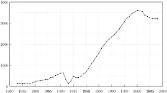 | 1950 - 1959 | 717 | Le président Eisenhower y était personnellement favorable[réf. nécessaire]. |