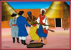 Ces tableaux – parfois désignés sous le nom de « fixés » – illustrent des scènes de la vie quotidienne, mais abordent aussi des sujets religieux tels que la vie du fondateur du mouridisme, Cheikh Amadou Bamba.