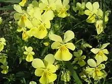 - Pensée calaminaire : ce taxon est notamment endémique des pelouses calaminaires primaires présentes sur la frontière belgo-allemande (entre Liège et Aix-la-Chapelle). Les conditions de sa dispersion ne sont pas connues mais l'étude génétique de la population française montre peu de différences avec la population belge[1].
