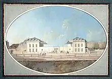 - L'affirmation d'Auguste Doniol selon laquelle les Frères des écoles chrétiennes acquirent en juin 1837 « les deux pavillons » (supposément ceux donnant sur la rue Raynouard) et une partie des jardins de « M. Briant »[2] semble contredire celle d'Henri Bouchot, selon laquelle Briant possédait « le derrière des bâtiments » (vraisemblablement l'orangerie et les bâtiments adjacents) « et le potager avec une ouverture sur la rue Bois-le-Vent », tandis que « la plus grosse part, la maison à colonnades, les terrasses et le jardin » avaient été adjugés à l'« écrivain et homme politique, Claude Fulchiron, de Lyon »[3], et certaines affirmations selon lesquelles ces biens-ci passèrent en 1811, au moins en partie, à la fille du banquier Isaac-Louis Grivel, Anne-Marie, et furent vendus par son mari Charles Vernes aux Frères en 1836[4], une autre partie ayant été acquise par l'industriel David Singer, qui ouvrit une rue à son nom pas plus tard qu'en 1836[5].