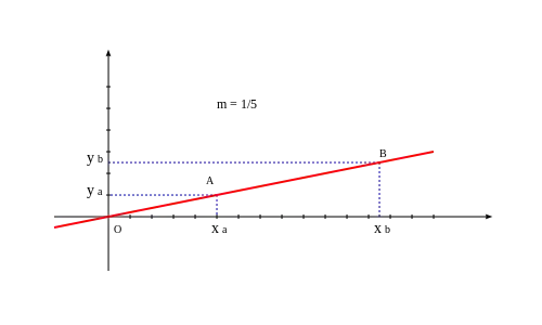 • si la droite n'est pas parallèle à l'axe , et si l'on connaît deux points distincts A et B , le coefficient directeur m de cette droite, sa pente, vaut :