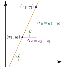 • si la droite est parallèle à l'axe , on dit parfois que sa pente est infinie, ou plus rigoureusement, que sa pente n'est pas définie[1],[2].