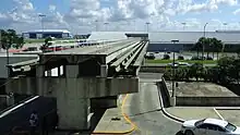 D'une longueur de 2,2 km double voie, elle dispose de trois stations, une au niveau 4 du terminal principal (juste au-dessus de l'ancienne ligne du terminal B), une au parc de stationnement courte durée et une au centre de location de voiture.