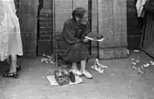 Les Polonais ethniques non juifs dans les grandes villes ont été ciblés par la politique łapanka que les occupants allemands ont utilisée pour rassembler sans discrimination des civils dans la rue pour les envoyer comme travailleurs forcés en Allemagne. À Varsovie, entre 1942 et 1944, il y eut environ 400 victimes quotidiennes des opérations łapanka. Les Polonais des zones rurales et des petites villes ont également été enrôlés pour le travail forcé par les occupants allemands. Selon les recherches de l'Institut de la mémoire nationale entre 1939 et 1945[23], les citoyens polonais ont été emmenés en Allemagne comme travailleurs forcés dans des conditions inhumaines, entraînant de nombreux décès. D'après, Czesław Łuczak évalue le nombre de Polonais déportés en Allemagne à 2 826 500[24] . Ils ont été contraints de porter des étiquettes violettes d'identification avec des « P » cousus sur leurs vêtements, soumis à un couvre-feu et interdits de transport en commun. Alors que le traitement des ouvriers d'usine ou des ouvriers agricoles variait souvent en fonction de l'employeur individuel, la plupart des ouvriers polonais étaient obligés de travailler plus d'heures pour des salaires inférieurs à ceux des Européens de l'Ouest. Dans de nombreuses villes, ils furent contraints de vivre dans des casernes isolées derrière des barbelés. Les relations sociales avec les Allemands en dehors du travail étaient interdites et les relations sexuelles (« souillure raciale ») étaient considérées comme un crime capital passible de la peine de mort.