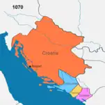 Petar Krešimir obtint de l'Empire byzantin d'être reconnu comme le souverain officiel des cités dalmates. Il a nommé son cousin Dmitar Zvonimir ban de Slavonie. Il peut étendre son influence de la Paganie le long de la côte Adriatique à la Zachlumie, la Travonie et la Dioclée, ainsi qu'à la Bosnie dans l'est. À ce temps, le royaume de Croatie s'étend de la baie de Kvarner jusqu'à la rivière Drina.