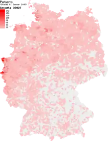 Répartition du patronyme Peters en Allemagne (2005)