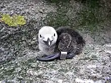 La période de couvaison dure d’août à février[réf. nécessaire]. Les parents couvent à tour de rôle pendant 26 à 32 jours[7]. Après l’éclosion, le petit est nourri par ses parents de poissons, mollusques et crustacés. L’oisillon gagne la mer vers l’âge de 8 semaines[réf. nécessaire]. Adultes, ils reviennent où ils sont nés pour trouver leur partenaire après avoir passé 2 ou 3 ans à courir les océans[réf. nécessaire].
