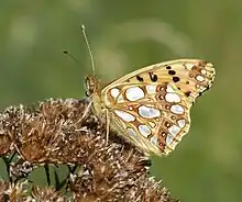 - Queen of Spain Fritillary en anglais; Kleiner Perlmuttfalter en allemand et Kleine parelmoervlinder en néerlandais.
