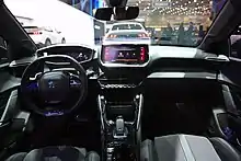 La Peugeot 208 est équipée de l’i-Cockpit constitué de l'instrumentation en hauteur, d'un petit volant à double méplat et d'un écran tactile. L'instrumentation, selon le niveau de finition, peut être constituée d'un écran numérique 100 % 3D, tandis que la planche de bord est équipée d'un écran tactile pour l'info-divertissement et la navigation dont la taille varie en fonction du niveau de finition (13,18 ou 26 cm)[26].