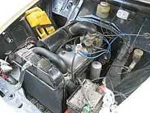 - Moteurs (quatre cylindres en ligne) avec culasse en Alpax à chambres hémisphériques et carburateur Solex :