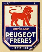 Le symbole du Lion apparaît en 1850 sur les lames de scies. Il doit symboliser les qualités des outils Peugeot : résistance des dents, souplesse des lames, rapidité de coupe[12].