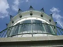 Une dernière série de 17 marches mène à la lanterne métallique de 4 mètres de diamètre[4] peinte en blanc à l'extérieur. Celle-ci a une paroi interne boisée puis en verre entrecoupée de barreaux à partir de mi-hauteur[38]. Elle est chapeautée d'une coupole ceinte d'un chéneau orné de gargouilles en tête de lion et de feuilles d'acanthe[4], surmontée d'un piédestal qui servait à soutenir une boule métallique qui n'est plus en place[34]. Un balcon bordé d'une rambarde métallique fait le tour de la lanterne.