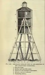 Les premiers travaux commencèrent sur le rocher le . Stevenson et 21 ouvriers arrivèrent à bord du voilier Pharos et commencèrent à décharger la baraque, dont les jambes massives étaient placées dans des trous du rocher. Après seulement deux jours, le site a dû être abandonné quand une violente tempête balaya la côte atlantique. Six jours plus tard, ils ont pu reprendre le calendrier de travail intensif de 16 heures par jour, entre 4 h et 20 h. Craignant le mal de mer, beaucoup d'ouvriers ont préféré tenter de dormir sur les roches humides plutôt que sur le Pharos.