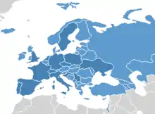 Les 51 fédérations adhérentes à l'UEFA se partagent 13 places en phase finale, en plus de celle de l'Allemagne, pays organisateur. Les équipes européennes sont réparties en huit groupes de six ou sept. Chaque équipe rencontre deux fois les autres membres de son groupe pendant une période allant du au . À l'issue de cette phase, les huit vainqueurs de groupe sont directement qualifiés, ainsi que les deux meilleures équipes ayant terminé à la deuxième place de leur groupe. Les six autres seconds de groupe se rencontrent en barrages aller-retour à élimination directe pour se disputer les trois dernières places qualificatives de la zone Europe.