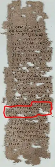 Sur les Dieux d'Apollodore, papyrus grec du IIe siècle av. J.-C., cite Déméter de Philétas tout en traitant de l'étymologie du mot ἌΟΡ épée » ou « lance »)[19].