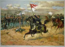 Philip Henry Sheridan, né le et mort le , est un officier de carrière de l'armée américaine et général dans l'Armée de l'Union lors de la guerre de Sécession. Sa carrière est marquée par son accession rapide au grade de major-général et sa collaboration étroite avec le lieutenant-général Ulysses S. Grant, qui transfère Sheridan du commandement d'une division d'infanterie sur le théâtre occidental des opérations, au commandement du corps de cavalerie de l'Armée du Potomac, sur le front est. En 1864, il défait les forces Confédérées dans la vallée de Shenandoah, puis détruit l'infrastructure économique de la vallée, épisode que ses habitants nommèrent « The Burning », faisant ainsi usage pour la première fois dans cette guerre de la tactique militaire dite de la terre brûlée[1],[2]. En 1865, sa cavalerie poursuit le général Robert E. Lee, et le force à se rendre à Appomattox. Après guerre, il est nommé gouverneur militaire du cinquième district militaire (Texas et Louisiane), chargé de la Reconstruction.