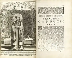 - À Paris Couplet publie en 1687 le livre (dédié à Louis XIV) qui le fait connaître partout en Europe : le Confucius Sinarum philosophus[1]. Cette œuvre, fruit du travail de nombreux traducteurs jésuites, a une longue préface signée par Philippe Couplet mais en partie écrite par son ami Prospero Intorcetta. Les nombreux comptes rendus de ce livre montrent que cette préface qui traite des religions de la Chine et de la stratégie missionnaire des Jésuites attirait presque plus d'attention de la part des lecteurs que les traductions annotées de trois textes confucéens[2]. Couplet est enthousiaste : « On pourrait dire que le système éthique du philosophe Confucius est sublime. Il est en même temps simple, sensible et issu des meilleures sources de la raison naturelle. Jamais la raison humaine, ici sans appui de la Révélation divine, n’a atteint un tel niveau et un telle vigueur. » Une « Table chronologique de la monarchie chinoise », qui porte la date de 1686, est insérée à la fin du tome.