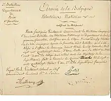 Je viens de commander mon bataillon à la dernière affaire de Menin, ou j'ai malheureusement perdu 200 républicains pour favoriser la prise de quantité de pièces de canon. »
