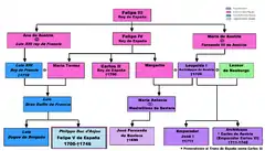 - Marie-Antoinette d'Espagne ( - ), mariée en 1750 à Victor-Amédée III de Sardaigne (1726-1796).