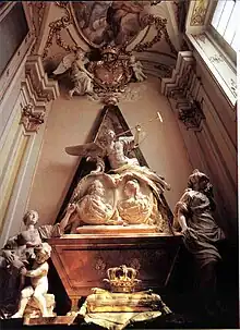 Philippe V meurt le et, contrairement à la tradition qui, depuis Charles Quint, veut que les monarques espagnols soient enterrés au palais de l'Escurial, est enterré en son palais San Ildefonso.
