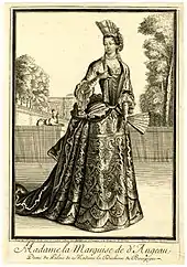 - Ensemble ils eurent au moins un fils, baptisé Philippe-Egon (1684-1719)[3] et titré marquis de Courcillon. Il était fameux pour sa beauté. Il participa à la bataille de Malplaquet (dans le cadre de la guerre de Succession d'Espagne) le . Il en revint « entre la vie et la mort »[4] et y perdit une jambe d'après ce que rapporte la correspondance de Madame, duchesse d'Orléans. Homosexuel notoire, il avait épousé Françoise de Pompadour-Laurière, duchesse de La Valette, dont il eut une fille unique, Marie-Sophie (1713-1756). Elle épousa[5] Charles-François, duc de Picquigny, 5e duc de Chaulnes, fils de Louis Auguste d'Albert d'Ailly. De leur mariage, ils n'eurent qu'une fille, Marie-Thérèse (1730-1736), morte en bas âge. Veuve, elle se remaria avec Hercule Mériadec de Rohan, prince de Soubise, duc de Rohan-Rohan, sans postérité.