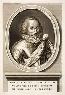 Philippe de Hohenlohe-Neuenstein (né le – mort le à IJsselstein), Comte de Hohenlohe-Langenbourg, est un général de la République des Provinces-Unies. Il assure l'intérim du stahoudérat de Hollande et de Zélande à la mort de Guillaume le Taciturne, mais l'année suivante les États Généraux, à l'instigation de van Oldenbarneveldt, lui préférèrent Maurice de Nassau.
