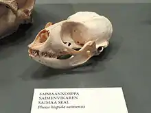 Le phoque marbré du lac Saimaa (Pusa hispida saimensis)[4] est une sous-espèce de phoques, de l'espèce Phoque annelé (Pusa hispida). Ils font partie des phoques les plus menacés au monde, avec une population totale d'environ 410 phoques[5].