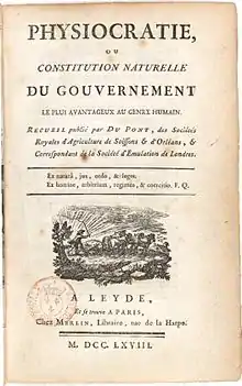 - Quesnay, Physiocratie, ou Constitution naturelle du gouvernement le plus avantageux au genre humain (recueil publié par Du Pont), 1767-1768.