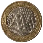 En 1998, le même système est introduit pour lancer la pièce de 2 livres conçu par Ian Rank-Broadley (avers) et Bruce Rushin (revers), frappée régulièrement jusqu'en 2015.