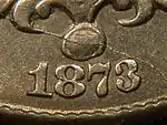Comme pour beaucoup de dénominations des pièces américaines, il y a deux variétés majeures du nickel de 1873. La première, connue sous le nom close 3 ou closed 3 (3 fermé) qui sont à l'origine d'une plainte déposée par le chef monnayeur, A. Loudon Snowden, auprès de Pollock, qui est alors encore directeur de la Monnaie. Snowden déclare que le chiffre « 3 » de la date ressemble trop à un « 8 ». La Monnaie prépare de nouveaux poinçons de date, dans lequel les bras du « 3 » ne s'enroulent pas vers le centre, créant ainsi la variété, nommée open 3 (3 ouvert)[29].