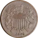 La guerre de Sécession apporte son lot de perturbations économiques qui aboutissent à une disparition de certaines pièces, dont le cent en métal (sa valeur intrinsèque étant devenue supérieure à sa valeur faciale)[4]. Le papier-monnaie (dont le plus petit billet est alors abaissé à trois cents), les timbres-poste, et des jetons réalisés par des émetteurs privés, comblent cette absence de pièces divisionnaires. Nombre de ces jetons ont la taille du cent, mais plus mince et en bronze. En 1864, le Congrès entame un processus de remise en circulation des pièces, en supprimant le billet de trois cents et en autorisant la frappe du cent et de la Two-cent piece (en) en bronze, dont les valeurs intrinsèques sont faibles[5]. Ces nouvelles pièces deviennent rapidement populaires, même si la Two-cent piece est assez vite retirée de la circulation. Le , le Congrès adopte une loi autorisant la US Mint à frapper la Three-cent piece, composée à 75 % de cuivre et 25 % de nickel[5].