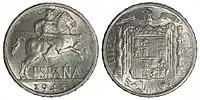 20.00 | 1,25 g | aluminium | un cheval monté avec la mention ESPAÑA | la valeur faciale CINCO CENTI autour des armoiries de l'Espagne | 1940-1941-1945-1953 | |