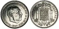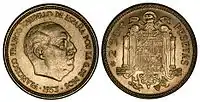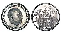 26.50 | 8,50 g | la valeur faciale 25 PTAS à côté des grandes armoiries de l'Espagne franquiste sur un aigle | ||||