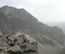 Versant sud du pic de Barbe de Bouc (au milieu) et du pic de Chanchou (à gauche), depuis le pic de Cestrède. | |||