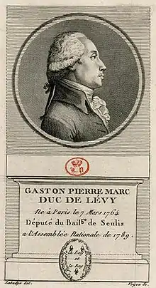 Pierre-Marc-Gaston de Lévis (1764-1830), deuxième duc de Lévis, pair de France, est un officier et homme politique français, auteur de plusieurs ouvrages littéraires, politiques et philosophiques, membre de l'Académie française.
