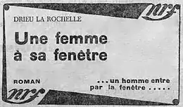 - Une femme à sa fenêtre, Gallimard, 1929
