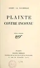 - Plainte contre inconnu, 1924 (recueil de 4 nouvelles)