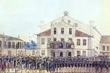Craignant de voir son fils proclamé roi par les révolutionnaires portugais, Jean VI repousse pendant plusieurs mois son départ en Europe[52]. Mais, alors que la situation s’enlise à Lisbonne, la garnison portugaise stationnée à Rio de Janeiro se soulève à son tour le . Pris au dépourvu par les événements, ni Jean VI, ni son gouvernement (pourtant en sécurité au palais de Saint-Christophe) ne réagissent face à la rébellion. Pierre prend alors l’initiative de rencontrer les unités mutinées et de négocier avec elles. Il convainc ensuite son père d’accepter leurs demandes, de nommer un nouveau cabinet et même de prêter serment d’obéissance à la constitution portugaise en gestation[57],[58],[59],[60].