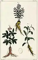 - Pierre Le Chéron d'Incarville a fait réaliser à Pékin, entre 1746 et 1747, un ouvrage composé de quatre cents dessins de plantes en couleurs accompagné du nom chinois de la plante représentée, en caractères chinois, copié d’un important ouvrage de 1505 commandé par l’empereur Hongzhi, 本草品彙精要, le (Yuzhi) bencao pinhui jingyao, Essentiel classé de la matière médicale était conservé dans la bibliothèque impériale mais n'avait jamais été publié[16],[n 2].