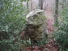 C'est une pierre massive de quartz qui présente une face presque plate et une autre très arrondie. Le mégalithe se trouve dans un bois privé en bordure du parc du château d'Outrelaize, sur la rive gauche du ruisseau de Corneville qui rejoint la Laize à Bretteville-sur-Laize.