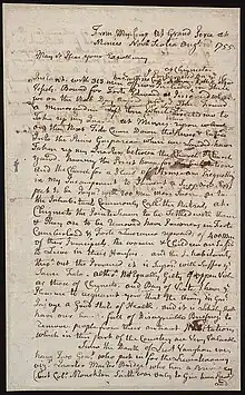 - 1759 - Le , il reçoit une lettre du lieutenant britannique William Caesar McCormick le remerciant d'avoir protégé les prisonniers britanniques.