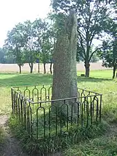 « Alríkr, fils de Sigríðr, érigea cette pierre en mémoire de son père Spjót, qui alla dans l'ouest, effondré et combattu. Il connaissait toutes les forteresses de voyages[14]. »