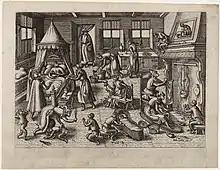 - Chercher « Pierre van der Borcht » pour voir Suite de scènes de mœurs et jeux où les personnages sont figurés par les singes habillés, sur estampes.kbr.be.