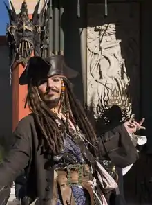 L'acteur Dale Clark imitant Johnny Depp dans Pirate des Caraïbes, dans les rues de Hollywood en 2013.